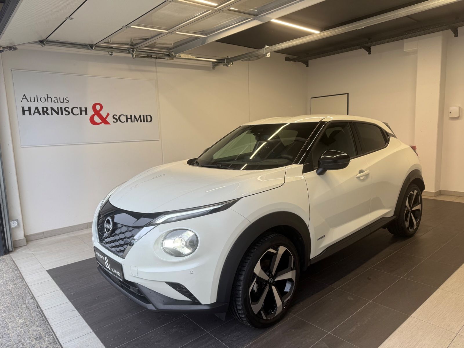 6 Lautsprecher, Abdeckkappen Außenspiegel Schwarz, Ablagetasche an Vordersitzlehnen, Airbag Beifahrerseite abschaltbar, Airbag Fahrer-/Beifahrerseite und Seitenairbag vorn, Ambiente-Beleuchtung, Audiosystem: Radio, Ausstattungs-Paket: Nissan Connect, Außenspiegel elektr. anklappbar, Außenspiegel elektr. verstellbar, Außenspiegel heizbar, Außentemperaturanzeige, Bremsassistent (Nissan Brake-Assist), Dachantenne im Haifischflossen-Design, Dachhimmel schwarz, Dachspoiler, Einparkhilfe hinten, Fahrassistenz-System: Aktive Fahrkomfortregelung (Fahrwerksdämpfung), Fahrassistenz-System: Autonomer Notbrems-Assistent, Fahrassistenz-System: Berganfahr-Assistent, Fahrassistenz-System: Fernlichtassistent, Fahrassistenz-System: Kurvenbremskontrolle (Aktive Spurkontrolle), Fahrassistenz-System: Sicherheitssystem ERA GLONASS mit automatischem Notruf, Fahrassistenz-System: Verkehrszeichenerkennung, Fahrer-Informations-System (FIS) mit Farbdisplay, Fahrmodusschalter, Fensterheber elektrisch vorn + hinten, Gepäckraumabdeckung / Rollo, Geschwindigkeits-Begrenzeranlage, Getriebe Automatik - Multi-Mode, Innenspiegel mit Abblendautomatik, Isofix-Aufnahmen für Kindersitz, Karosserie: 5-türig, Klimaautomatik, Kopf-Airbag-System, Kopfstützen vorn und hinten verstellbar, Lenksäule (Lenkrad) höhenverstellbar, Leseleuchte vorn, LM-Felgen, Motor 1,6 Ltr. - 69 kW Hybrid, Nebelscheinwerfer LED, Nebelschlussleuchte LED, One Pedal Drive (elektronisches Gaspedal), Parkbremse elektrisch, Radioempfang digital (DAB+), Radstand 2636 mm, Reifen-Reparaturset, Reifendruck-Kontrollsystem, Rückfahrkamera, Rücksitz geteilt/klappbar, Schadstoffarm nach Abgasnorm Euro 6d, Schalt-/Wählhebelgriff Leder, Service-System: Nissan Connect Services, Sitz vorn links höhenverstellbar, Sitzbezug / Polsterung: Leder, Smartphone Schnittstelle (Apple CarPlay & Android Auto), Sonnenblenden mit Spiegel (beleuchtet), Sportsitze vorn (Monoform-Design), Sprachbediensystem Spracherkennung, Start-Stop-Knopf, Start/Stop-Anlage, Steckdose (12V-Anschluß), Technologie-Paket Getriebe Automatik, Technologie-Paket Getriebe Manuell, Türgriffe innen verchromt, Türverkleidung Kunstleder, Verglasung hinten abgedunkelt, Warnanlage für Sicherheitsgurte vorn und hinten